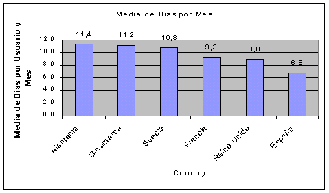 Fuente: MMXI Europe Reino Unido, Francia, Alemania y Dinamarca en paneles en el hogar, España datos preliminares de panel en el hogar, Suecia panel en el hogar y en el trabajo. Octubre 2000