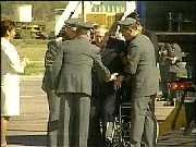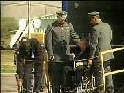 Augusto Pinochet llegó al aeropuerto internacional de Santiago de Chile la mañana de este viernes. Descendió en una silla de ruedas y una vez en suelo chileno caminó apoyado por un bastón. Luego abordó un helicóptero que lo trasladó hacia el hospital militar de Santiago.