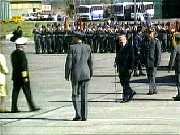 PINOCHET SONRIENTE, CONTENTO Y A PASO LIGERO A RITMO DE MARCHAS MILITARES