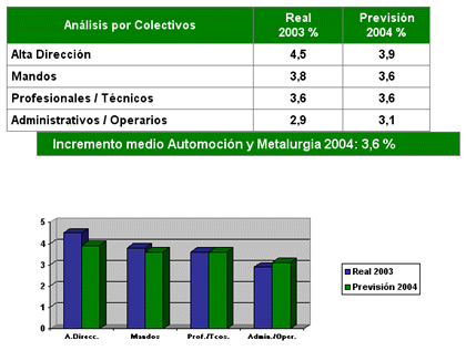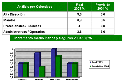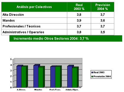 En promedio, el incremento para 2004 será muy similar al implantado para 2003. En general, no habrá prácticamente diferencia entre los distintos colectivos.