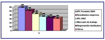 Las empresas continúan adoptando una actitud conservadora frente a los incrementos salariales, planificando cifras muy próximas al IPC. La cifra media de IPC que las compañías han tenido en cuenta al presupuestar el incremento salarial 2004 es del 2,9%.