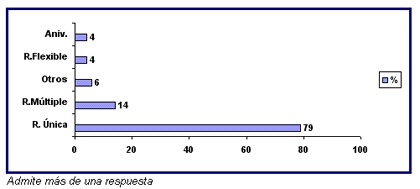 Revisión fija única: Una fecha común de revisión para todos los empleados (salvo excepciones): 79%
