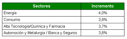 El sector energía es el que mayor incremento tiene previsto aplicar en el salario de sus empleados con un 4%.