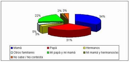 Resulta llamativo que en casi porcentajes idénticos sea uno solo de los progenitores el que ejerce el castigo. En estos casos queda en duda el rol del padre que no lo hace. Es posible tanto que justifiquen la acción a través del silencio o la complicidad o que ejerza una especie de resguardo hacia los chicos.