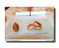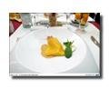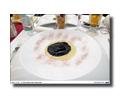 Sopa fría de coco, patata y peras con caviar y aceite de café, pasta fresca de remolacha rellena de mouse de rodaballo, Tagliata de buey «black angus» con habas al romero, Rape con envuelto de berenjenas, pesto de rucola y esencia de genjibre o el Semifrío de grapa con salsa de chocolate blanco y salsa de frambuesa, son algunas de las especiales aportaciones de este joven pero experimentado cocinero.