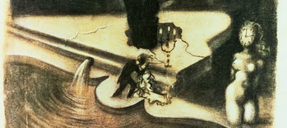 El dibujo incorpora la iconografía en la que podemos reconocer al Dalí surrealista: desde el ciprés de forma fálica que emerge a través del piano -con claras reminiscencias de Arnold Böcklin-, a la figura femenina, cuyo rostro es un reloj. La pareja protagonista del filme está abrazada encima del piano, que a su vez reposa en una piscina con forma de violoncelo. El paisaje del fondo es una perspectiva típicamente daliniana.