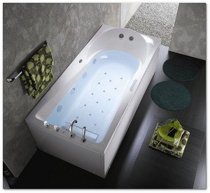 Esta bañera es perfecta para parejas que quieren pasar una velada romántica juntos, ya que permite a dos personas acomodarse en ambos extremos con un reposacabezas. También ofrece jets planos de hidromasaje, inyección de aire desde el fondo, ozonoterapia y cromoterapia.