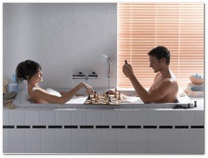 Crear lo máximo en baños relajantes sólo para dos puede ser tan complejo o tan sencillo como tú quieras. Atenuar las luces del baño y añadir velas alrededor del borde de la bañera creará una atmósfera romántica; usar velas con aromaterapia también añadirá un ambiente sensual. Igualmente, sales y aceites de baño perfumados aumentarán el relax.