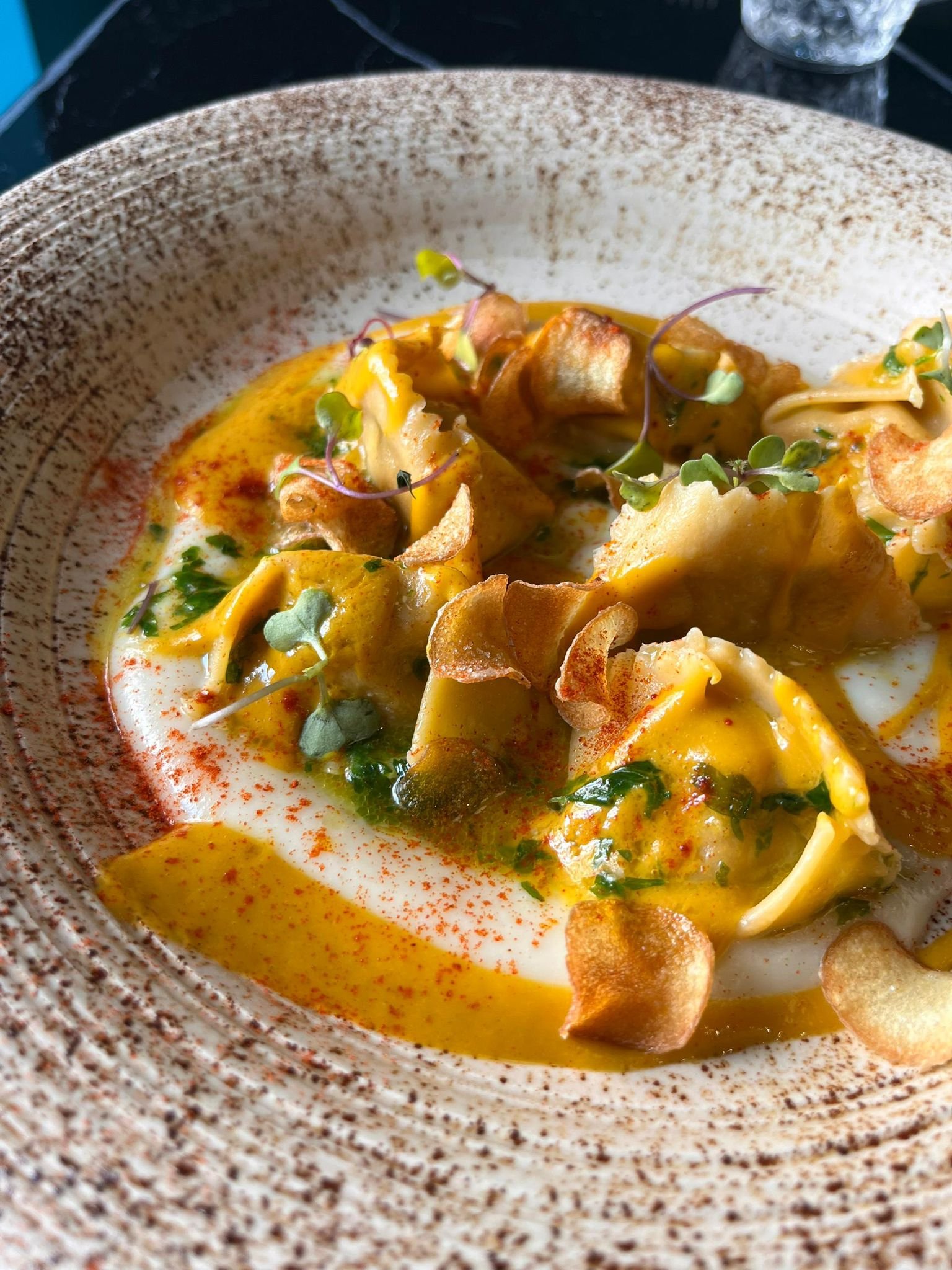 El momento del postre en Gianna Ristorante es, también, una oportunidad para sorprender. Lejos de las fórmulas convencionales, Esposito propone creaciones como los raviolis de piña con chantilly al curry y caramelo de coco salado. Una combinación inusual que reivindica el sabor como territorio libre, en el que lo dulce y lo salado se encuentran para cerrar el menú con un golpe de efecto.