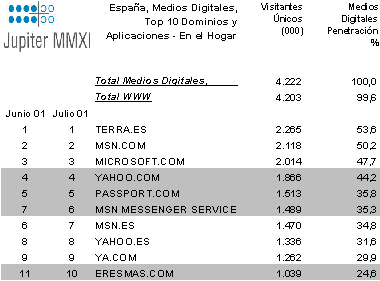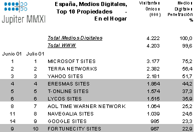 En el caso de España el ritmo de crecimiento del número de internautas desde el hogar durante los 6 primeros meses del año 2001 ha sido de 11%, por lo que de seguir así acabaríamos el año con crecimiento cercano al 22-24% anual. Porcentajes todavía bajos si los comparamos con el 19% de crecimiento que ha presentado el Reino Unido en los 6 primeros meses y el 14% que ha presentado Francia en ese mismo periodo.