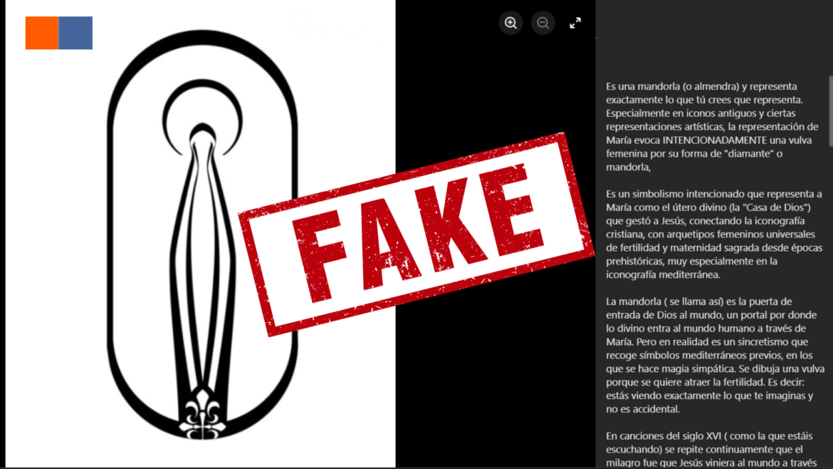 Algunas teorías esotéricas y lecturas simbólicas no académicas han popularizado la idea de que la mandorla —la forma ovalada que enmarca algunas figuras sagradas en el arte cristiano— representa deliberadamente un útero o una vulva, especialmente en relación con la figura de la Virgen María.