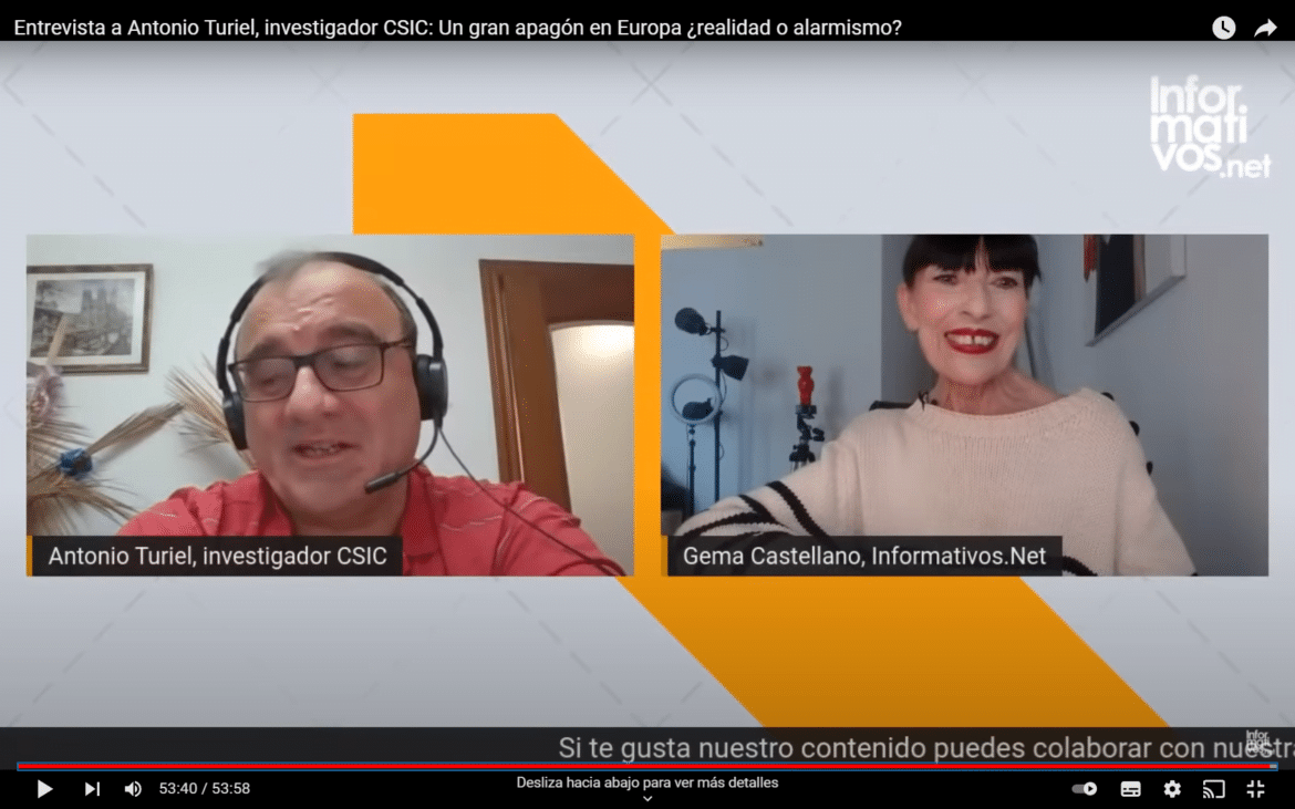Según Turiel, investigador científico del CSIC, ya estamos experimentando problemas provocados por la escasez de energía, pero en concreto, sobre la energía eléctrica sí existe un riesgo técnico, sobre todo en Centroeuropa, de que pueda producirse un apagón.
