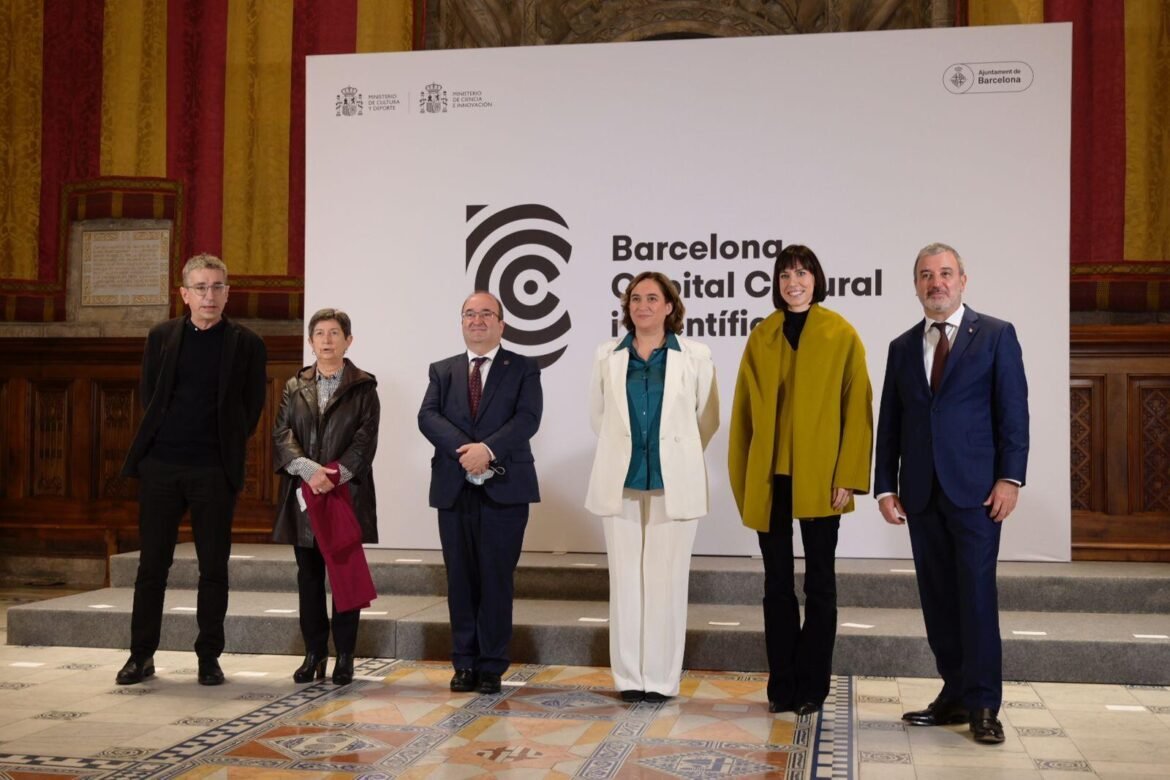 El ministro de Cultura y Deporte, Miquel Iceta, y la ministra de Ciencia e Innovación, Diana Morant, han firmado esta mañana el protocolo de colaboración para la cocapitalidad cultural y científica de Barcelona con su alcaldesa, Ada Colau.