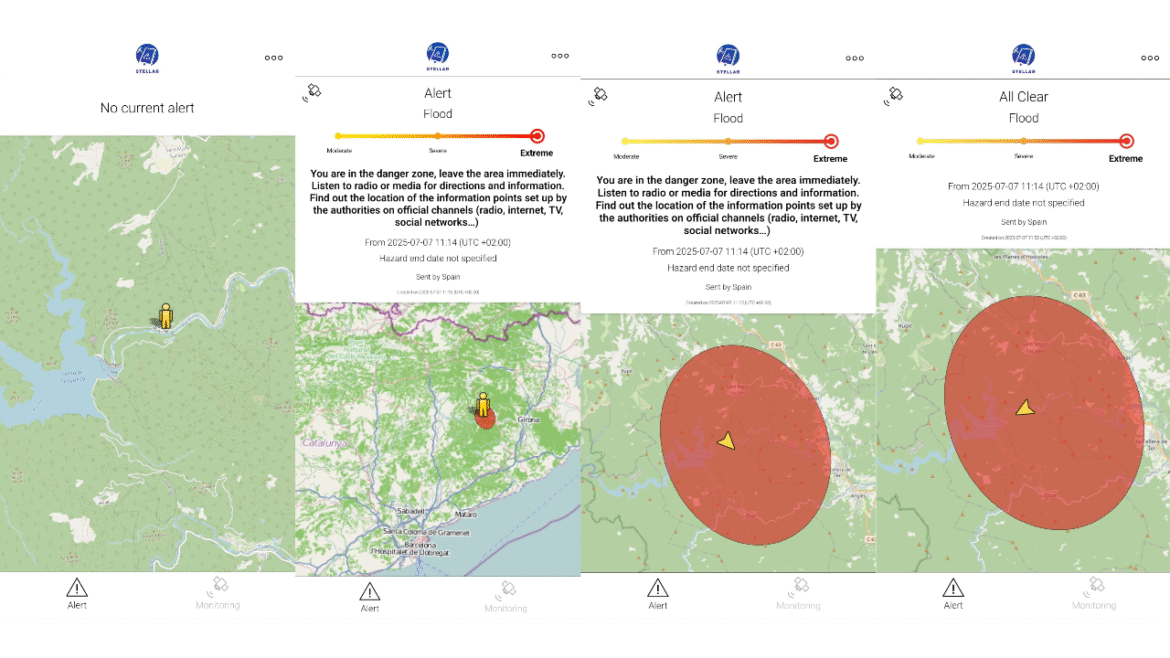 La prueba permitió simular una alerta por riesgo de inundación en una localización sin acceso a redes terrestres de telefonía. Los satélites Galileo, que sobrevolaban la zona, lo remitieron a los dispositivos móviles situados en el área de emergencia y en cuestión de segundos, los usuarios recibieron la alerta y pudieron visualizar con precisión el área afectada gracias a la localización por satélite.