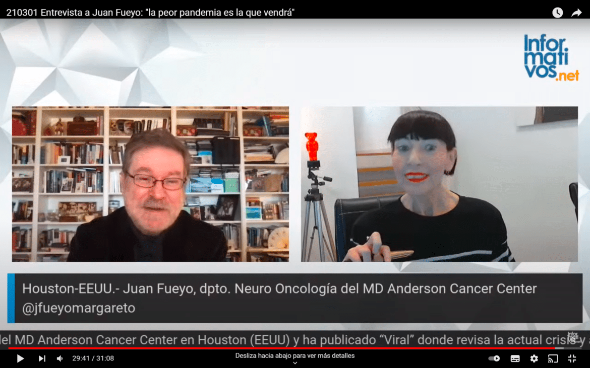 «Si no se toman medidas, ‘un virus’ puede asesinar a 3.500 millones de personas en los próximos diez años. Prácticamente la mitad de la humanidad. La Gripe Española a principios del S.XX infectó a 500 millones de personas y en ese momento la población mundial era de 2.000 millones de personas» Juan Fueyo